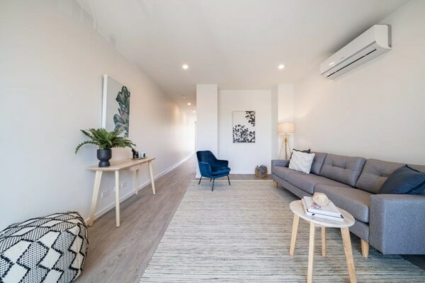 Comfort is assured year-round with heating and air conditioning throughout, while a single remote garage provides secure parking with internal access. The fully fenced courtyard offers privacy and low-maintenance outdoor living, completing the picture of effortless modern convenience. In near-new condition, the property showcases quality finishes and contemporary styling throughout.