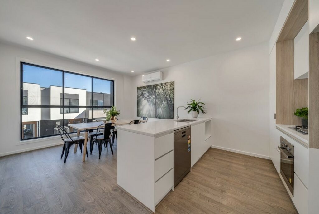 Experience modern low-maintenance living in this beautifully presented near-new three-bedroom, three-bathroom townhouse perfectly positioned in one of Noble Park’s most convenient pockets. The master bedroom features a stylish ensuite, while a guest suite on the ground floor enjoys easy access to the ground floor bathroom. All bedrooms include built-in robes, offering excellent storage and comfort for families or shared living. The light-filled open-plan design provides a spacious living and dining area that flows effortlessly to an oversized balcony—perfect for entertaining. The modern kitchen boasts stone benchtops, stainless-steel appliances, and ample storage, while the large dining area adjoins the kitchen and connects seamlessly to the living space for easy everyday living.