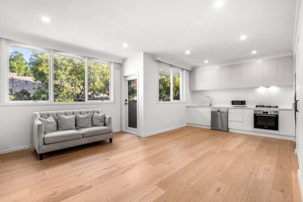 Inside, the apartment has been thoughtfully modernised, featuring a sleek kitchen with stone benchtops and premium Bosch appliances, a light-filled living and dining area that opens to a private balcony, and three generously sized bedrooms with built-in robes and plush carpet. The central bathroom is finished with quality fixtures, while split system heating and cooling ensures year-round comfort.